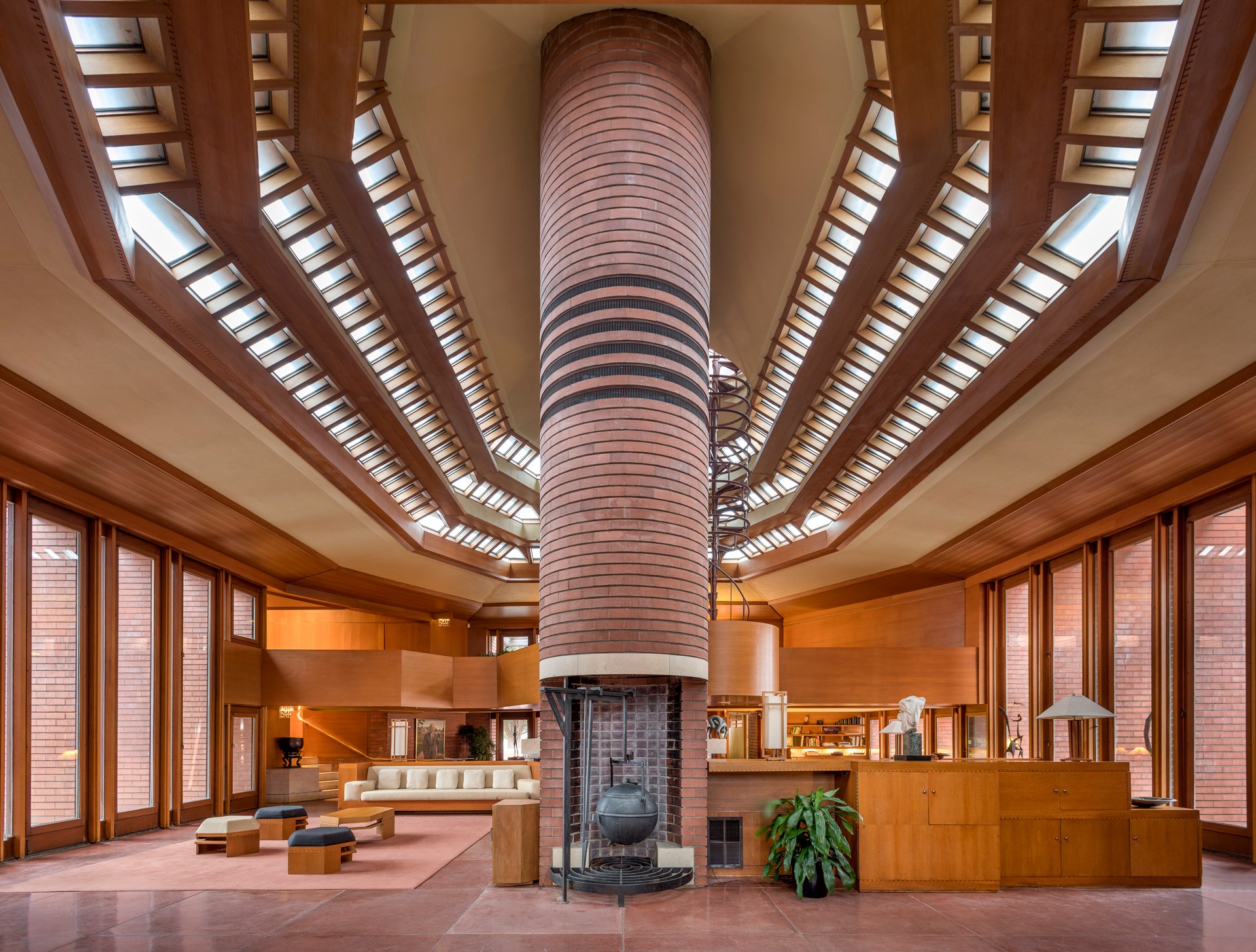Enjoy a 360° virtual guided tour of Wingspread's Great Hall! Learn about the iconic design and history of this Frank Lloyd Wright-designed building. Once a private home's main living area, the Great Hall at Wingspread is now used for meetings, receptions and dining experiences. Click the titles below to experience a full 360° perspective of this remarkable space.